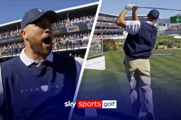 Three-time Super Bowl champion Travis Kelce goes within a few feet on the 16th hole at WM Phoenix Open. Source…