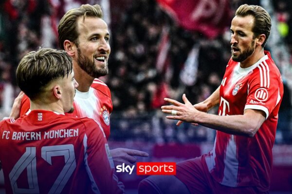 Harry Kane scores his 500th career goal in style with his second for Bayern Munich against Werder Bremen in the…