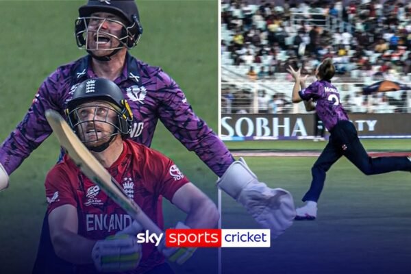 Jos Buttler gave his wicket away early as he skied it to Brandon McMullen, leaving England two down early in…