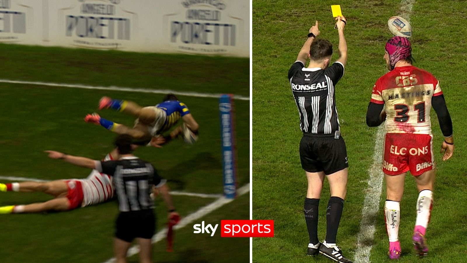 'Yellow card!?' | Warrington score acrobatic try and Hastings is sin-binned in same play!